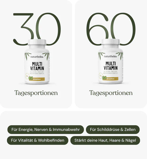 Unser Multivitamin Produkt ist deine Basisversorgung mit einem vollen Spektrum an Vitaminen, Mineralstoffen und wertvollen Vitalstoffen. Es ist perfekt für eine umfassende Nährstoffversorgung und zum unterstützenden Erhalt deiner Vitalität, insbesondere bei körperlicher und geistiger Belastung.